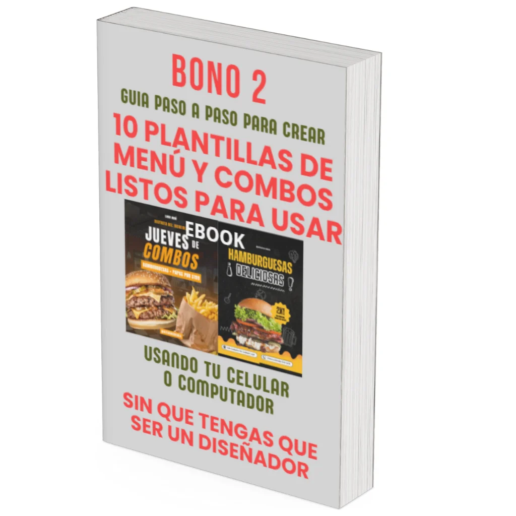 Lleva tus negocio de venta de hamburguesas al siguiente nivel con los MENÚ usados por los negocios más exitosos, que contratan diseñadores para crear la carta de productos para que escojan tus clientes. Aprende a personalizar cada Menú, para que tus clientes se antojen desde que comiencen a leer todo aquello que tienes para ofrecerles. Habla de tus carnes con sabor casero, de tus salsas que brindan una experiencia única al paladar, y de tus combos. ¡Dale el toque final perfecto a la imagen de tu negocio, con un MENÚ profesional!🍫🍓